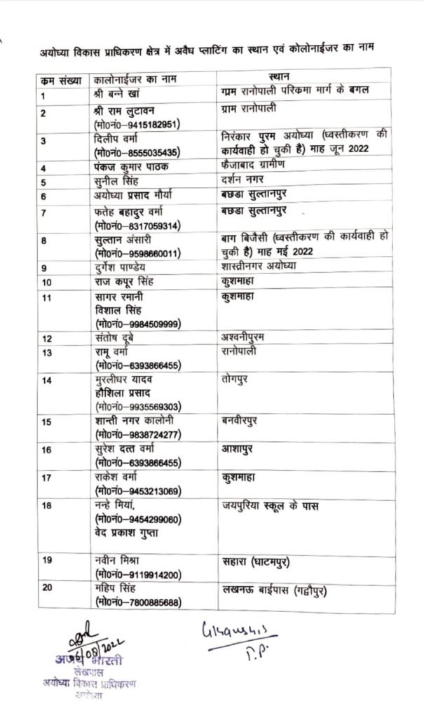Ayodhya: मेयर और विधायकों की मिली भगत से चल रहा अवैध प्लाटिंग और कालोनियों का धंधा, विकास प्राधिकरण ने जारी की लिस्ट