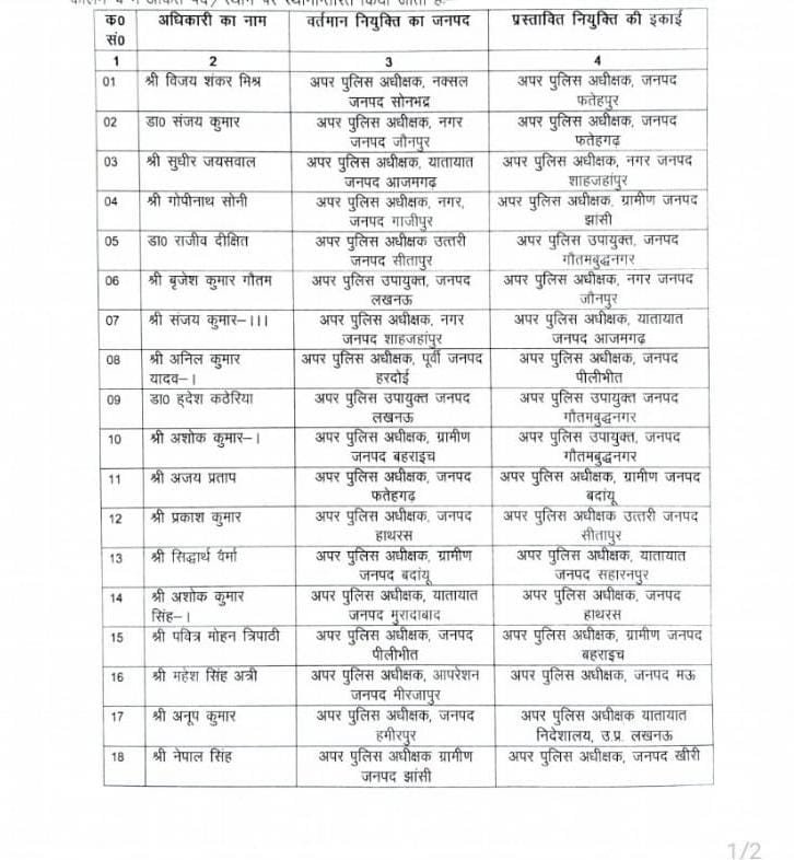 यूपी में 37 PPS अफसरों के हुए तबादले, जानें किसकी कहां हुई तैनाती !