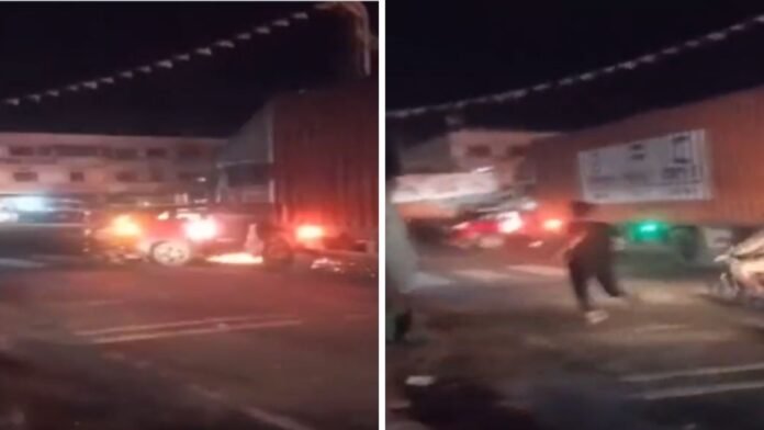 कार व ट्रक में लगी आग