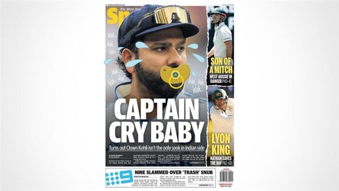 दरअसल, ऑस्ट्रेलिया के खिलाफ जारी टेस्ट मैचों की सीरीज में भारतीय कप्तान रोहित शर्मा का बल्ला खामोश है। हर मैच में वे फ्लॉप साबित हुए हैं। बस इसी कारण ऑस्ट्रेलियन मीडिया ने रोहित शर्मा का मजाक उड़ाना शुरू कर दिया है। ऑस्ट्रेलिया की एक प्रतिष्ठित मीडिया ग्रुप द वेस्ट ऑस्ट्रेलिया ने रोहित शर्मा की तस्वीर के साथ कैप्शन में लिखा है, ‘कैप्टन क्राई बेबी’।