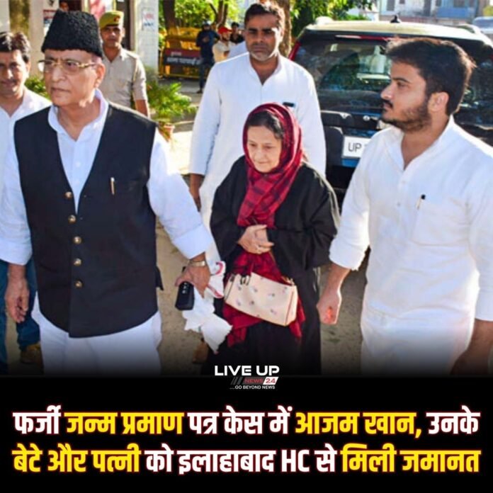 लखनऊ : समाजवादी पार्टी के वरिष्ट नेता व पूर्व कैबिनट मंत्री आजम खान समेत परिवार को इलाहाबाद कोर्ट से मिली बड़ी राहत मिली है। बर्थ सर्टिफिकेट मामले में इलाहाबाद हाई कोर्ट ने आजम खान, उनके बेटे और पत्नी को जमानत दी है. अदालत ने आजम की सात साल की सजा पर भी रोक लगा दी है. कोर्ट के फैसले के बाद आजम खान की पत्नी और बेटे अब्दुल्लाह को जमानत मिल गई है यानी परिवार के लोग अब जेल से बाहर आ पाएंगे। अब्दुल्लाह के दो बर्थ सर्टिफिकेट के मामले में ये सजा हुई थी। ये सजा पिछले साल रामपुर की एमपी एमएलए कोर्ट ने दी थी। रामपुर की स्पेशल कोर्ट ने 18 अक्टूबर 2023 को तीनों को सात सात साल की सजा सुनाई थी और पचास पचास हजार रूपए का जुर्माना लगाया था ।बीजेपी विधायक आकाश सक्सेना की शिकायत पर पुलिस ने केस किया था फिर अदालत से सजा हुई थी।
