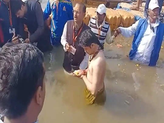 बागेश्वरधाम सरकार (Bageshwardham) पंडित धीरेंद्र कृष्ष्ण शास्त्री (Dhirendra Krishna Shastri) आज बृहस्पतिवार को माघ मेला प्रयागराज पहुंचे हुए हैं। धीरेंद्र शास्त्री ने सबसे पहले संगम पहुंचकर डुबकी लगाई है। इसके साथ ही उन्होंने चौक स्थित श्री सतुआ बाबा आश्रम पहुंचकर पत्रकारों से खास बातचीत की है।