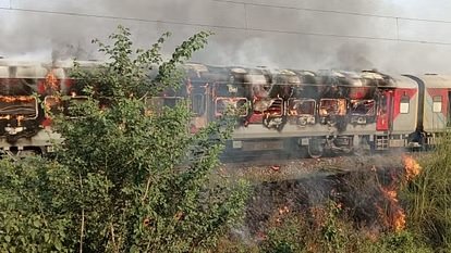 आगरा: पातालकोट एक्सप्रेस के दो डिब्बों में लगी आग, दो यात्री झुलसे।