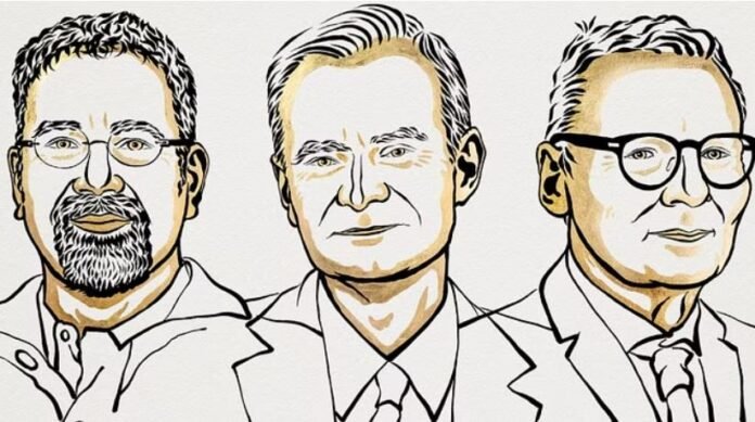 चिकित्सा क्षेत्र के बाद अब अर्थशास्त्र के क्षेत्र में नोबेल पुरस्कारों का ऐलान किया गया है। रॉयल स्वीडिश एकेडमी ऑफ साइंसेज ने अर्थिक क्षेत्र में योगदान के लिए इस साल के नोबेल पुरस्कारों का ऐलान कर दिया है। आर्थिक विज्ञान के क्षेत्र में अल्फ्रेड नोबेल की स्मृति में दिया जाने वाला स्वेरिग्स रिक्सबैंक पुरस्कार इस बार डारोन ऐसमोग्लू, साइमन जॉनसन और जेम्स ए. रॉबिन्सन को दिया जाएगा।