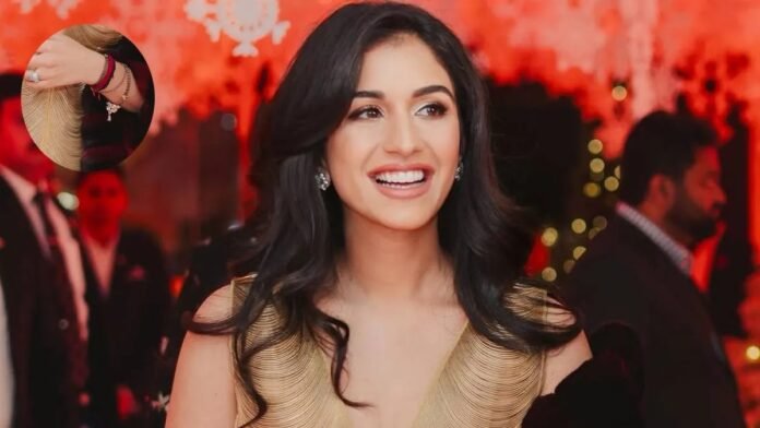 राधिका मर्चेंट ने अपने मंगलसूत्र को पारंपरिक रूप से गले में पहनने के बजाय इसे अपनी कलाई पर ब्रेसलेट की तरह पहना। इस मंगलसूत्र में काले मोती और लॉकेट के साथ अनंत अंबानी के नाम का अंग्रेजी अक्षर ‘A’ लिखा हुआ है। यह दिखाता है कि राधिका अपने पति अनंत के प्रति कितना गहरा प्यार रखती हैं।