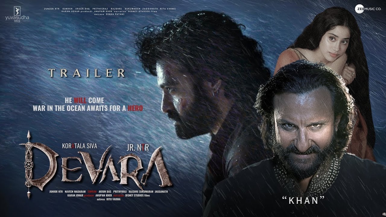 जूनियर एनटीआर की मोस्ट अवेटेड फिल्म ‘देवारा पार्ट- 1’ का ट्रेलर रिलीज हो गया है. लंबे इंतजार के बाद आखिरकार फैंस को फिल्म की झलक देखने को मिल गई है. ट्रेलर में जूनियर एनटीआर का दमदार अंदाज देखने को मिला है, वहीं जाह्ववी कपूर संग उनकी केमिस्ट्री भी खूब जची है. ट्रेलर की शुरुआत डायलॉग से होती है- ‘पुराने जमाने में नरकासुर नाम का एक राक्षस रहता था. वो लोगों को बहुत सताता था.’ ट्रेलर में जूनियर एनटीआर का खूंखार अवतार देखने को मिला है. वहीं सैफ अली खान की भी झलक देखने को मिली है.