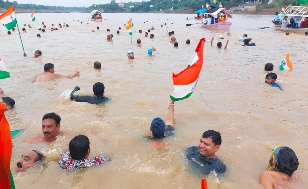 Breaking: देशभक्ति का अनोखा जज्बा, हाथों में तिरंगा…नर्मदा नदी की लहरों के बीच यूं निकाली गई तिरंगा यात्रा..!!