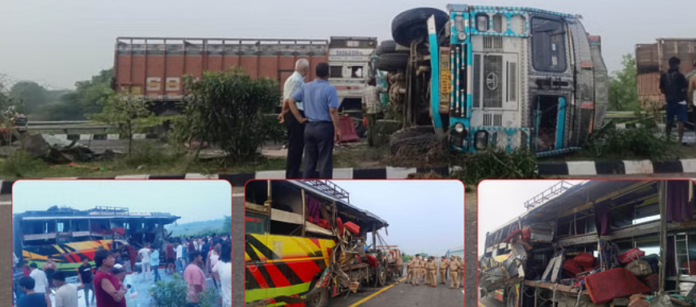 लखनऊ-आगरा एक्सप्रेसवे पर दर्दकनाक हादसा, स्लीपर बस और टैंकर में भिड़ंत, 18 की मौत