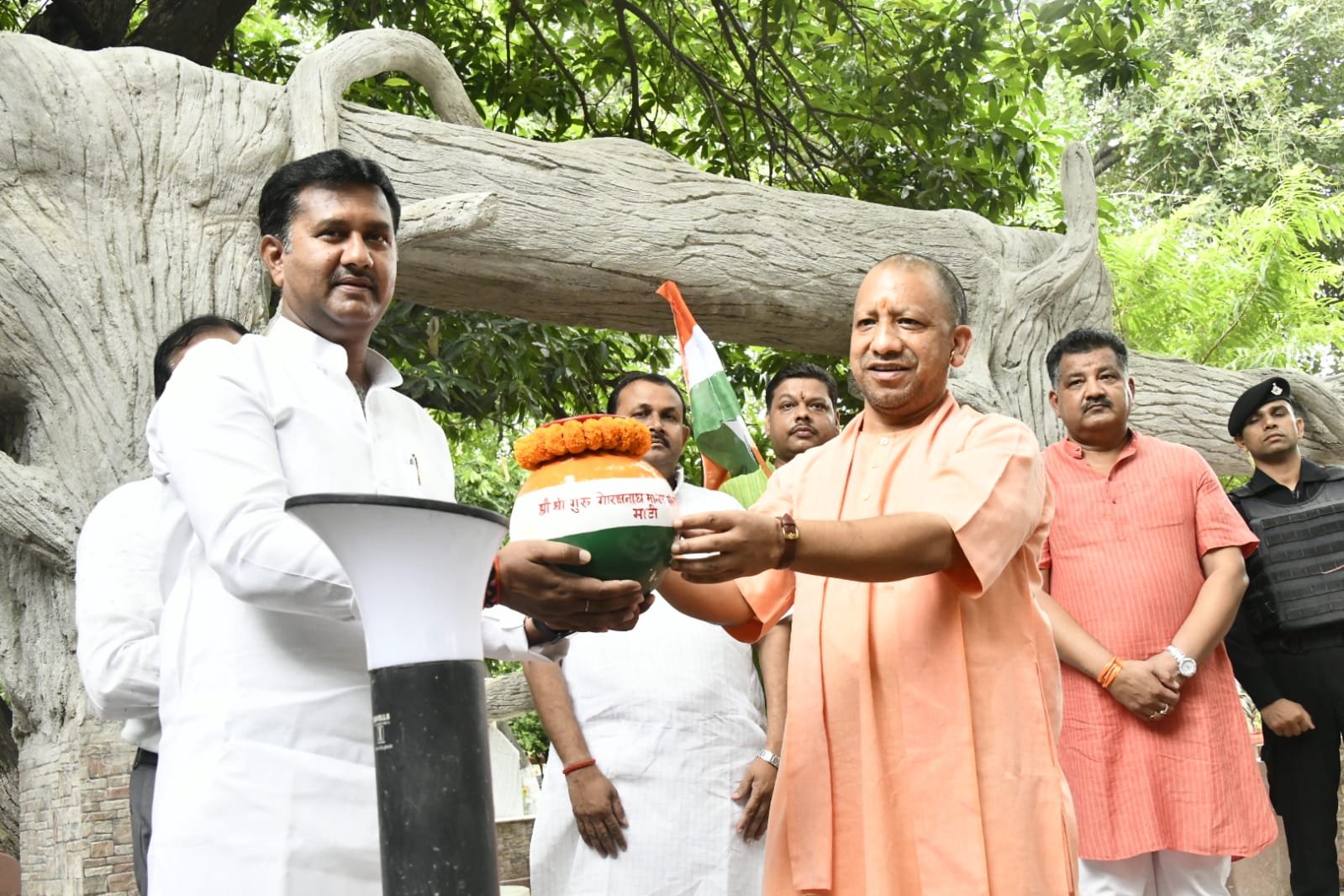 मेरी माटी मेरा देश कार्यक्रम के तहत मुख्यमंत्री ने गोरखनाथ मंदिर परिसर की मिट्टी से भरा कलश !