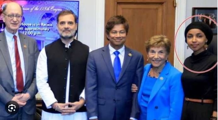 लोकसभा में नेता प्रतिपक्ष राहुल गांधी ने अमेरिका की अपनी यात्रा के दौरान विश्वविद्यालयों में छात्रों और शिक्षकों के अलावा भारतीय प्रवासियों से मुलाकात की। इसी कड़ी में कांग्रेस नेता ने रेबर्न हाउस ऑफिस बिल्डिंग में हुई एक बैठक में इल्हान उमर समेत कई अमेरिकी सांसदों के साथ मुलाकात की। हालांकि, उमर से राहुल की तस्वीरें सामने आने के बाद भाजपा ने राहुल गांधी पर जुबानी हमले शुरू कर दिए हैं।